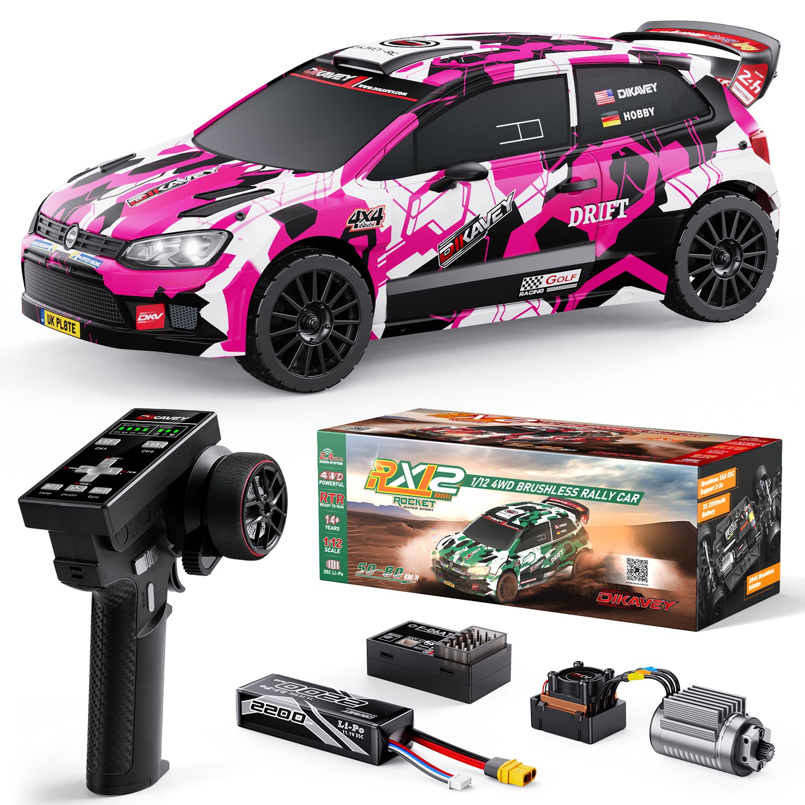 DIKAVEY 1/12 Scale RTR 4WD Brushless RC Rally Car | RX12(Pink)