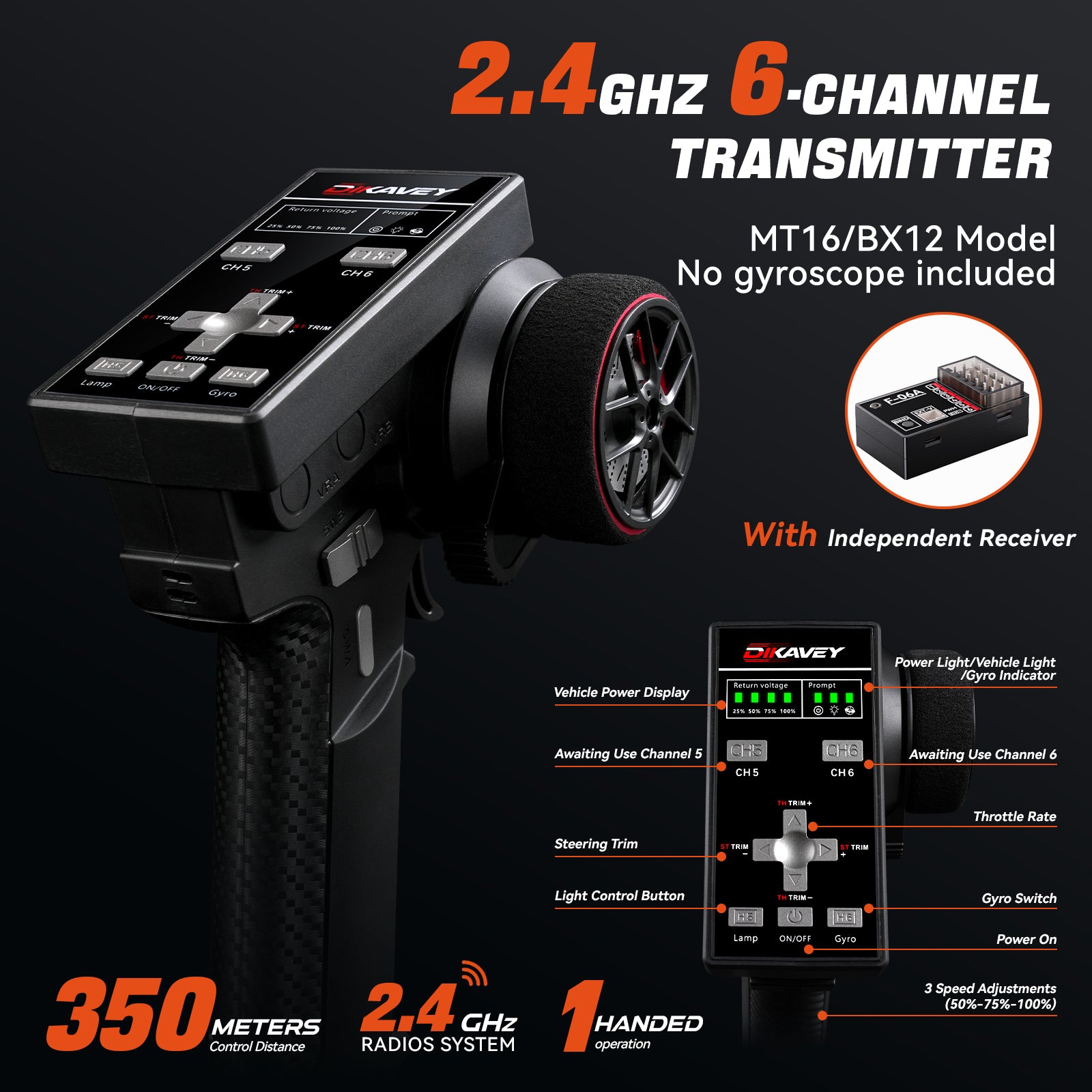 - FULLY EQUIPPED FOR EASY CONTROL:This off-road RC truck comes with a 2.4GHz remote (350 METERS Control Distance) — Use the 'TH.D/R' to adjust speed modes, ST/TH trim functions for precision.Perfect for new bashers: 35% 60% 100% throttle limit switch lets you build skill before unlocking full speed. Ready for unrestricted off-road fun!